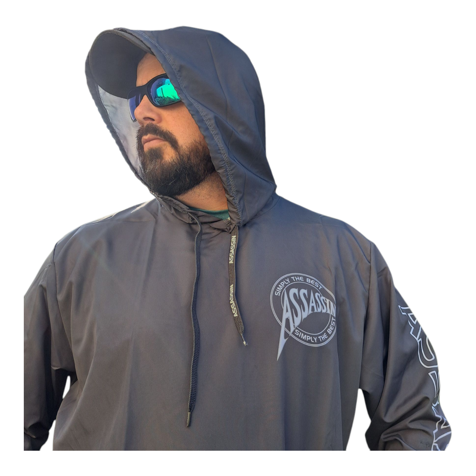 Crafted from lightweight, breathable fabric, it keeps you comfortable in hot weather while offering functional features for active fishing. The attached hood provides extra sun protection, while the elastic waistband and comfortable sleeves ensure freedom of movement and a secure fit. Finished with the signature Assassin Saltwater logo, this hoody combines durability, style, and trusted performance.